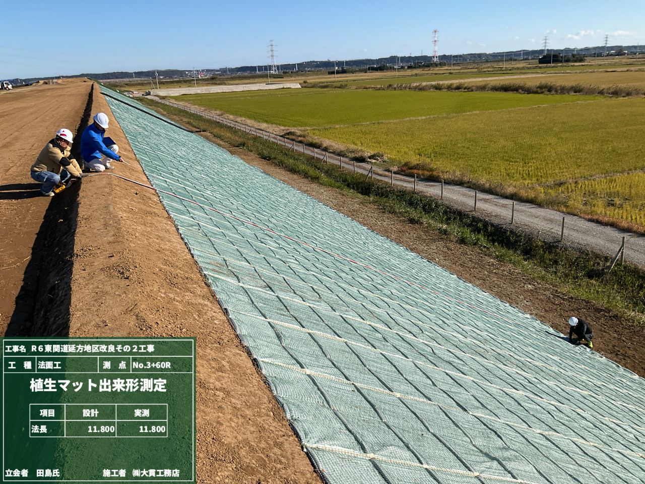 植生マットの敷設が終わったので、今日は出来形の確認です。