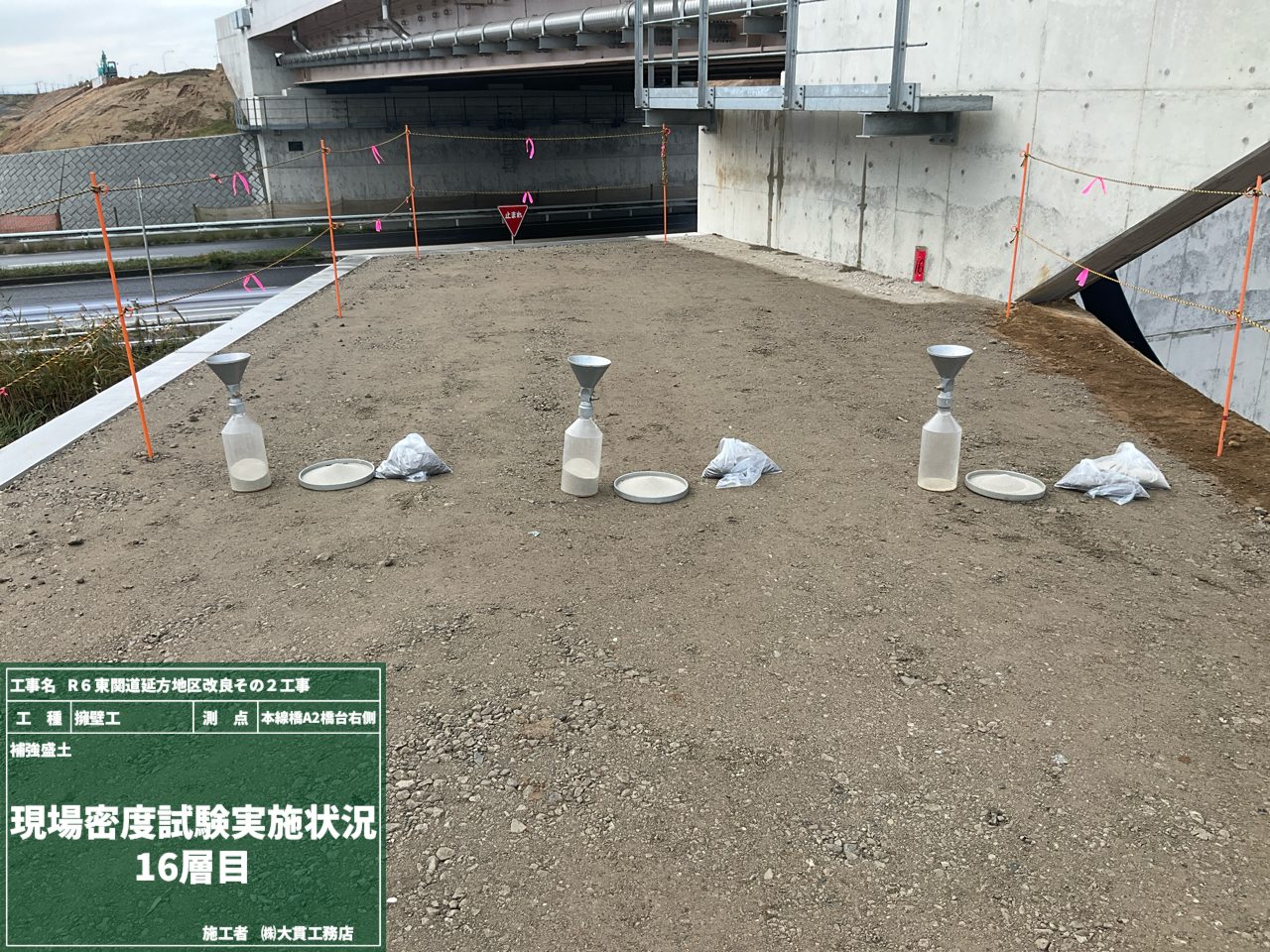結果は…問題なし👍とのことで、補強盛土は最上部の16層まで完了です!!