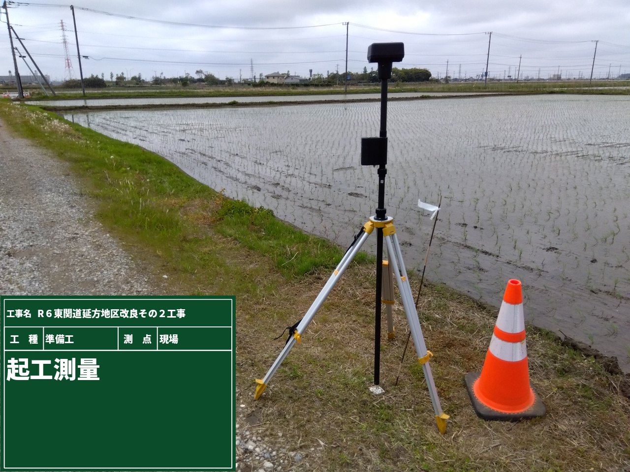 これは「起工測量(きこうそくりょう)」と言って、工事前に行う測量です。