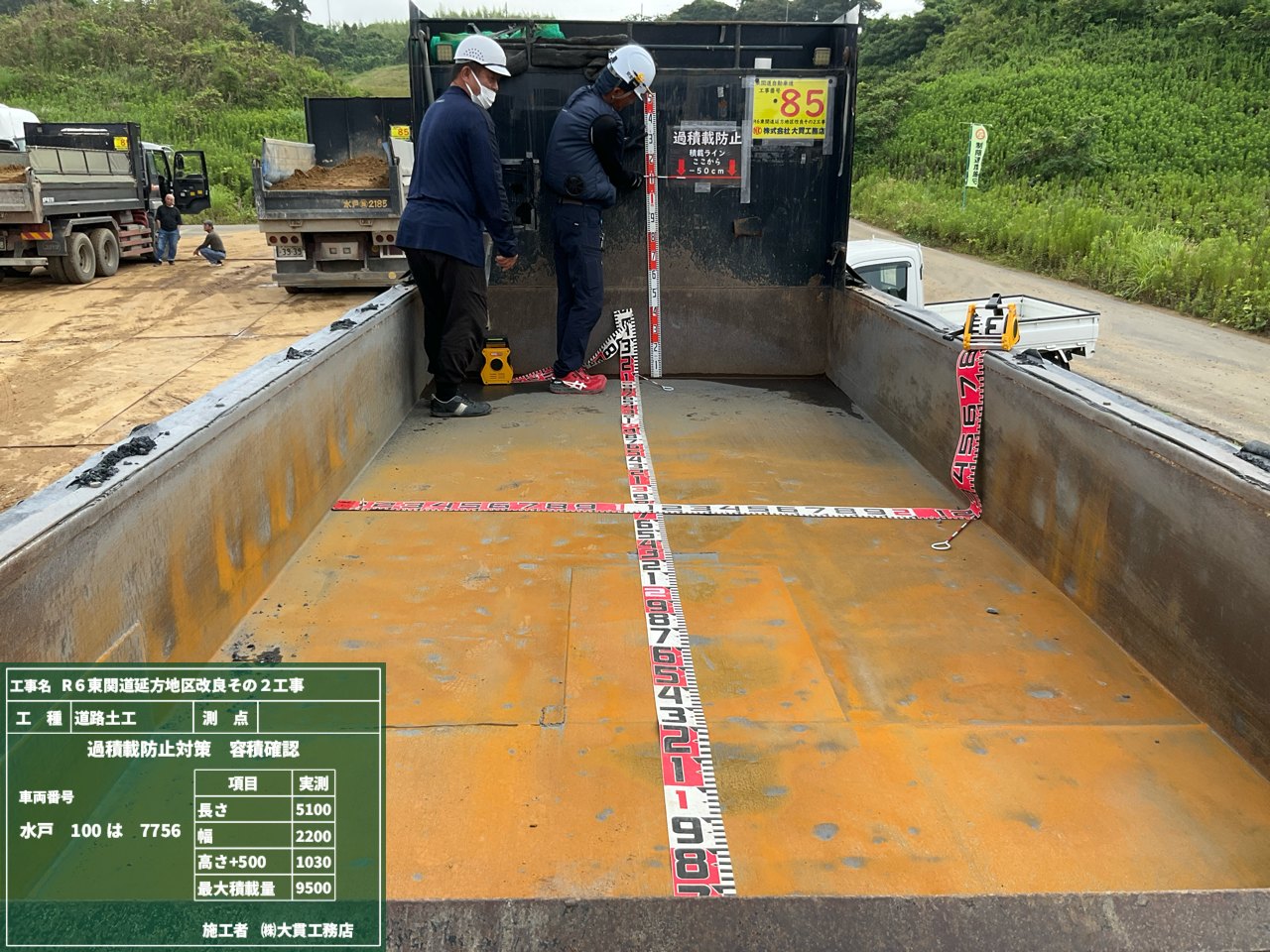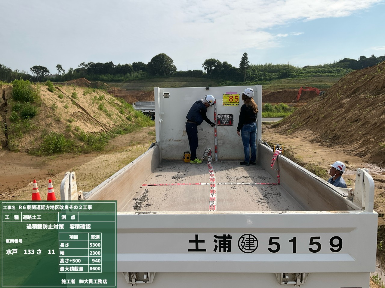 現場に入る車両全てをきちんと測定して、その車両ごとに積める量を確認してから作業に入ります。