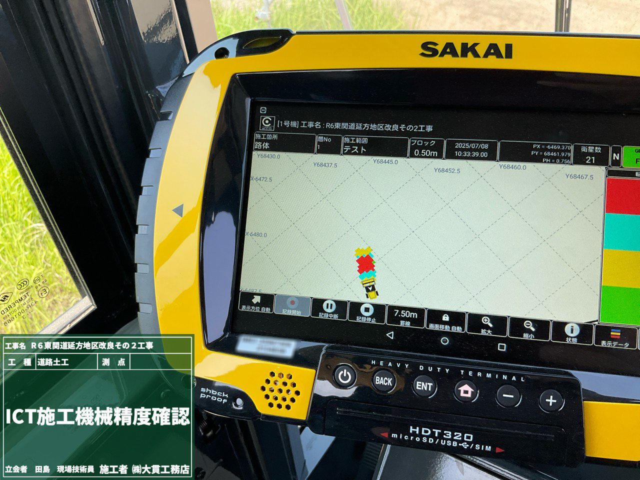この現場の盛土はICT管理(衛星を使った盛土の締固め管理)で行っています!
