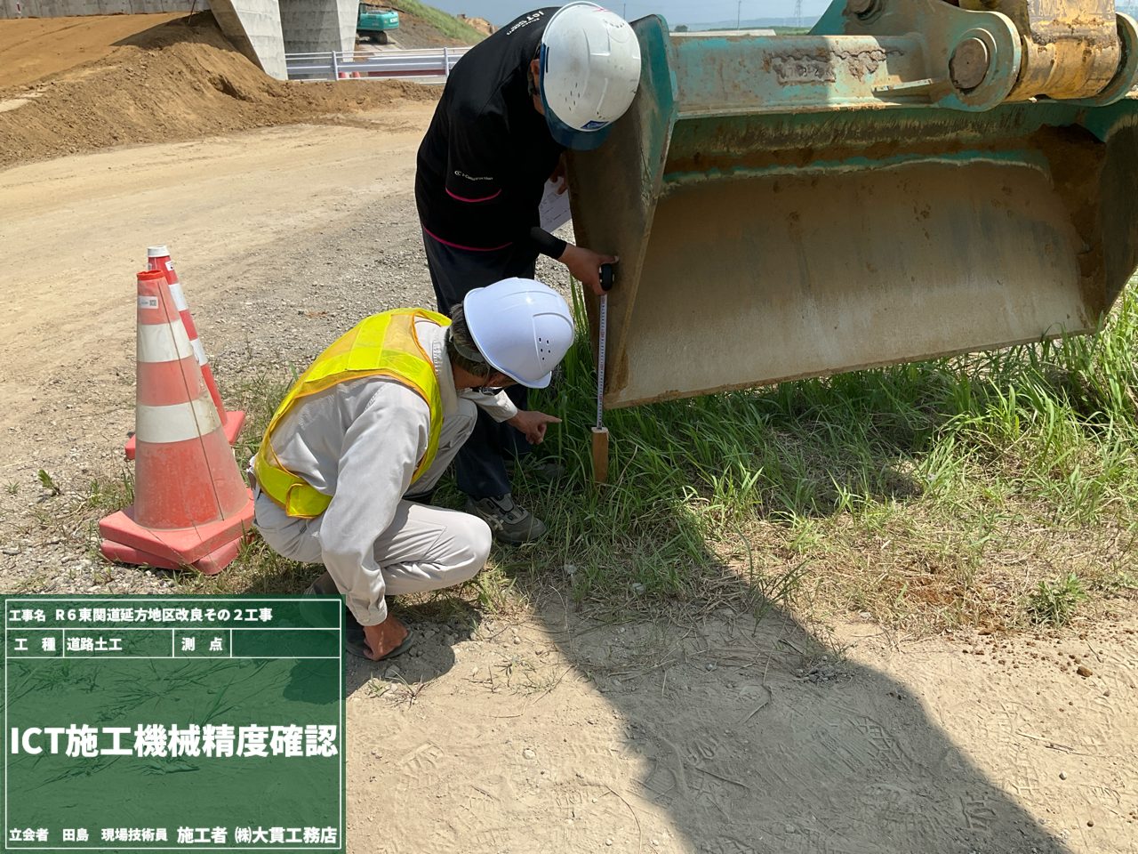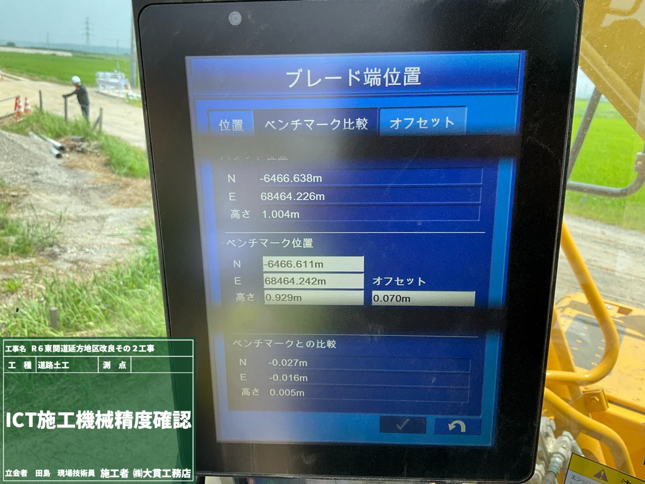 こんな風に、ICT建機が示す位置情報と実際の位置のズレを調整する精度確認を行っています👷♂️