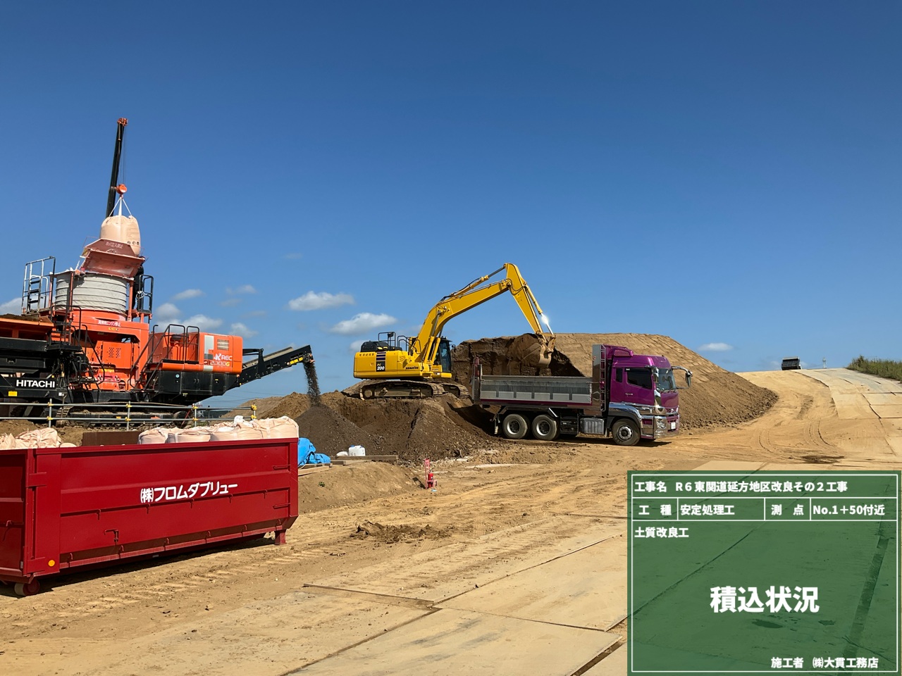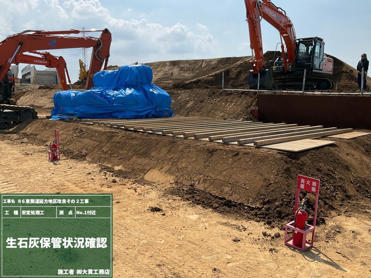 現場では、土質改良に使う”生石灰”を搬入・保管しています。