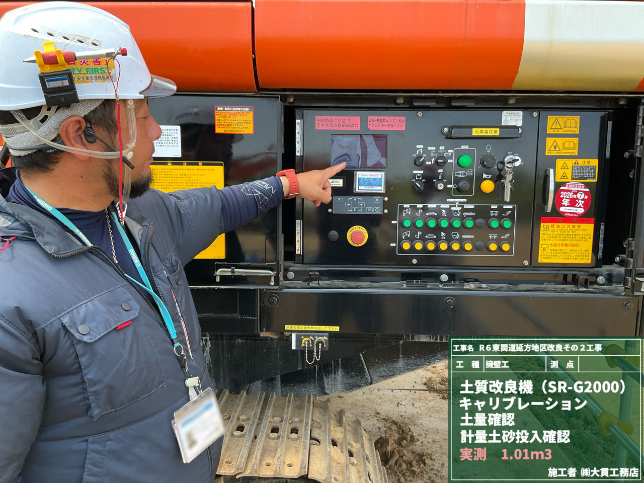 まずは土質改良機のキャリブレーションをして、計量や制御動作が正しく動くかを確認。