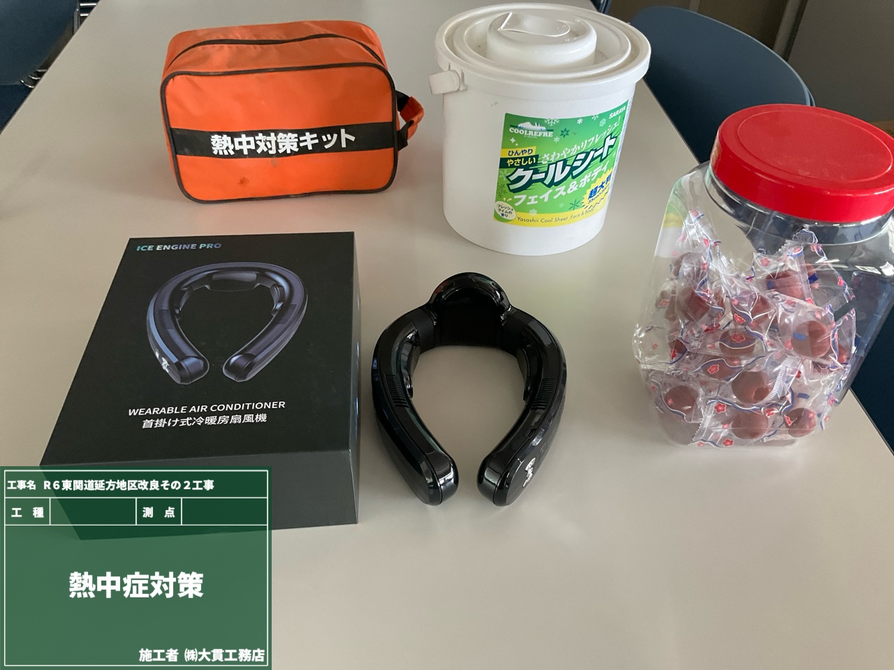そんな暑さに立ち向かうため、現場では熱中症対策グッズ&設備をフル装備!