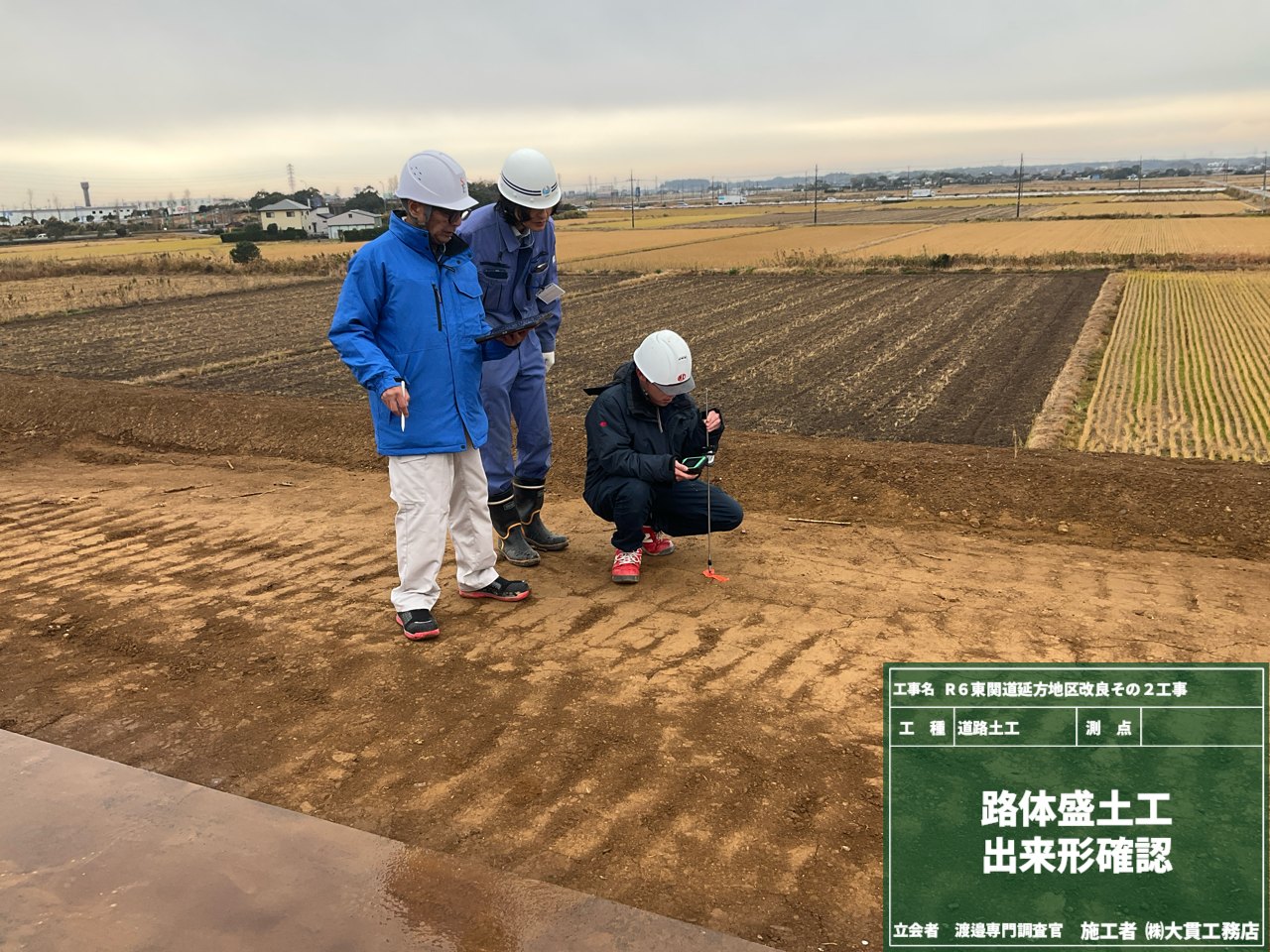 まずは本番前に、試験盛土を実施します。